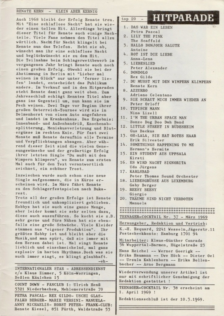 Teenager-Cocktail Nr 37 (März 1969) Klicken Sie auf die Fotos, um die Bilder zu vergrößern. Teilen macht Spaß! Auf X teilen (Wird in neuem Fenster geöffnet) X Auf Facebook teilen (Wird in neuem Fenster geöffnet) Facebook Gefällt mir Wird geladen … Hinterlasse einen Kommentar Antwort abbrechen Δ
