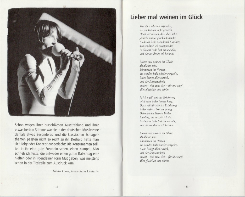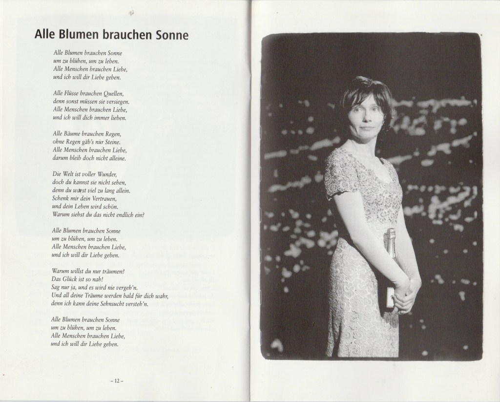 Margit Rogall, die bislang vor allem als Schauspielerin und Regisseurin bekannt ist, hat ihr erstes Theaterstück geschrieben: Letzendlich ist es eine kleine hommage an eine durchschnittliche deutsche Schlagersänergin. Die kommerziell ausgerichtete, einfach gestrickte Musik und das tragische Ende der Sängerin hat die Schauspielerin Rogall zu diesem Stück angeregt.