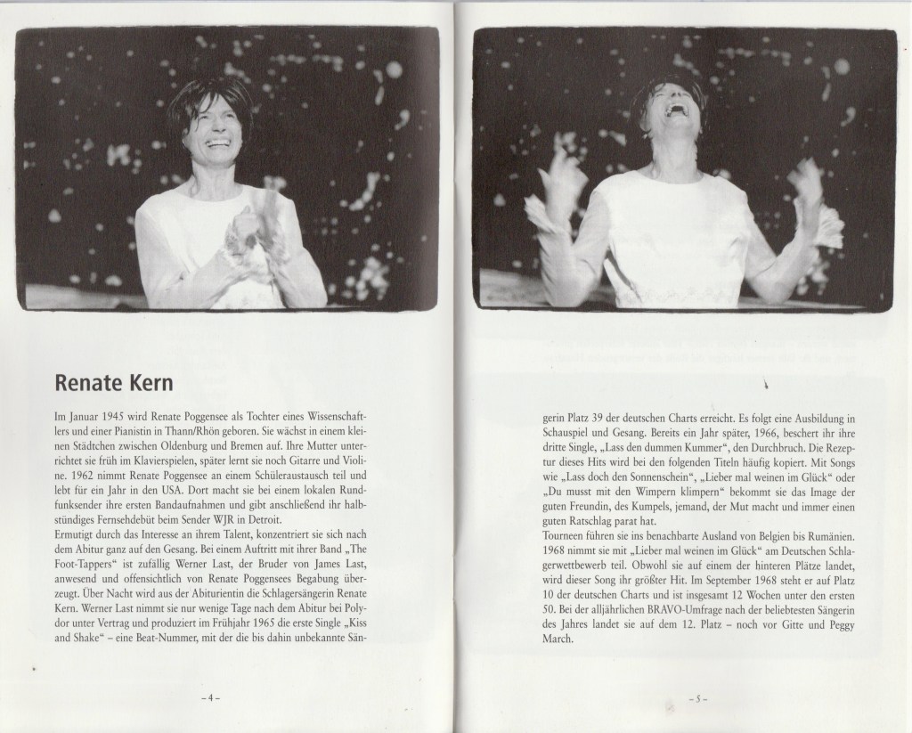 Am 13. Dezember 2003 findet die Uraufführung des Theatertstücks BUTTERFAHRT von Margit Rogall in den Kammerspielen der Städt. Bühnen Nürnberg statt. In diesem Monolog (gespielt von Elke Wollmann) wird das Leben der Schlagersängerin Renate Kern bis zu ihrem tragischen Ende behutsam und einfühlsam durchleuchtet.