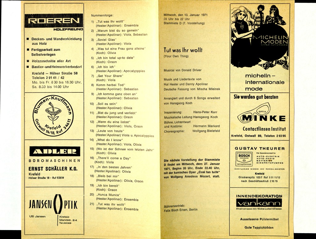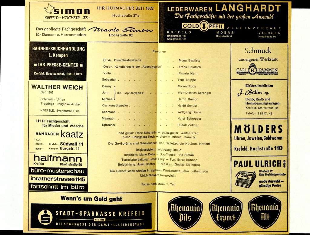 Meine Frage war, ob Informationen zu diesem Musical (in irgendeiner Form) im Krefelder Stadtarchiv vorhanden sind. Unten sehen Sie die Antwort. Veröffentlicht mit Genehmigung von Stadtarchiv Krefeld. Besonderer Dank geht an Frau M. Plattenteich.